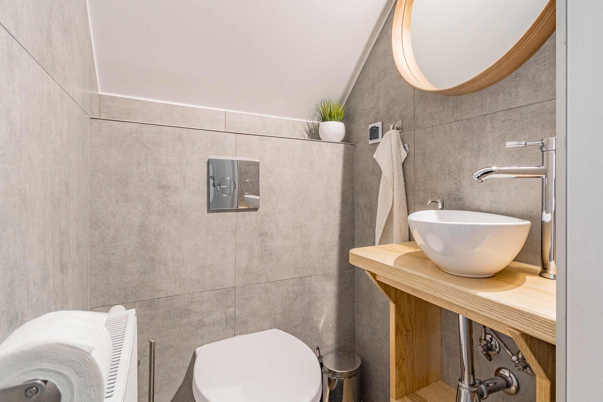 Do dyspozycji gości jest również nowoczesna łazienka z prysznicem oraz w pełni wyposażony aneks kuchenny z lodówką i niezbędnymi akcesoriami takie jak sztućce, garnki oraz szklanki, które umożliwiają przygotowanie domowych posiłków.