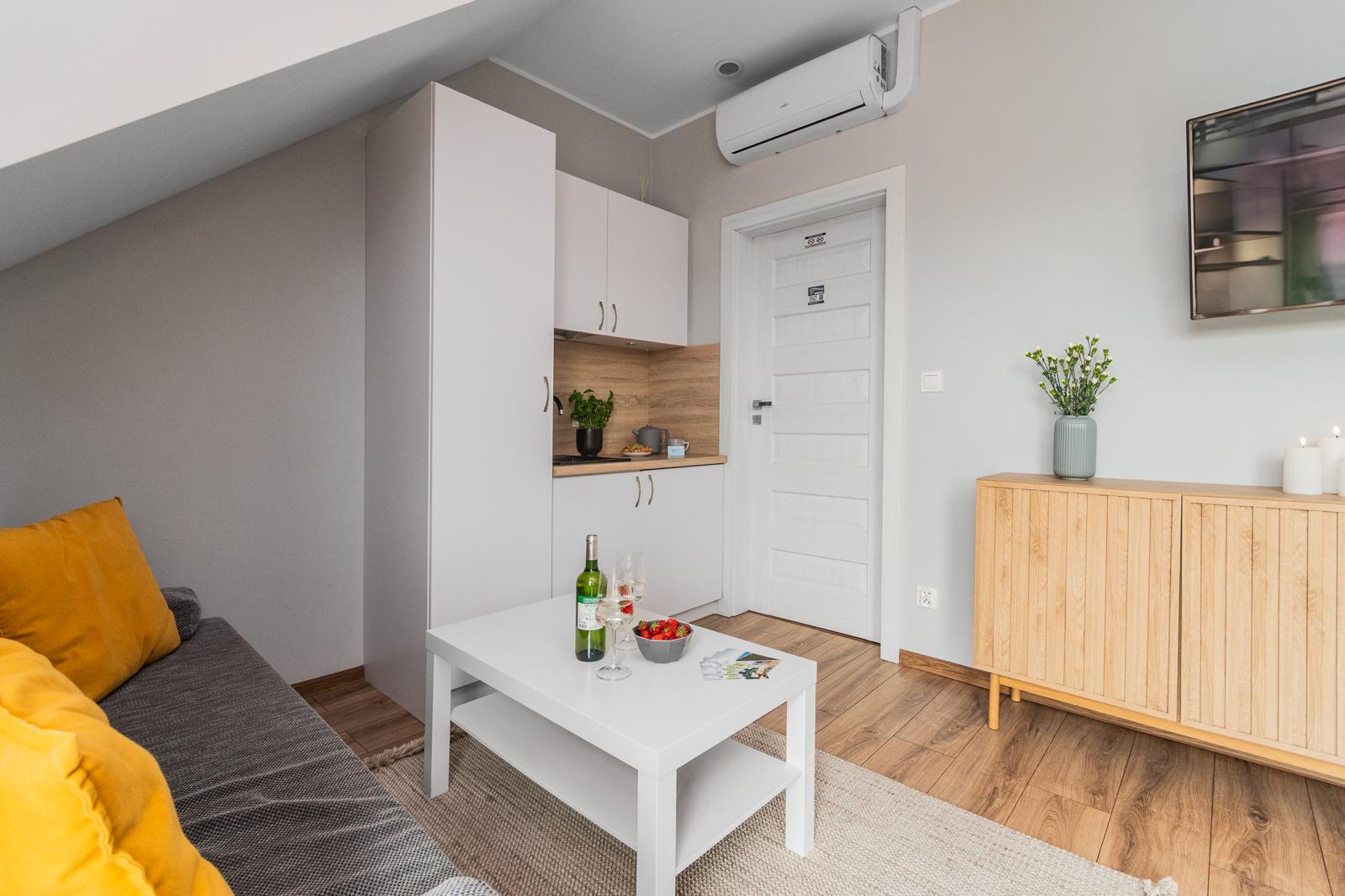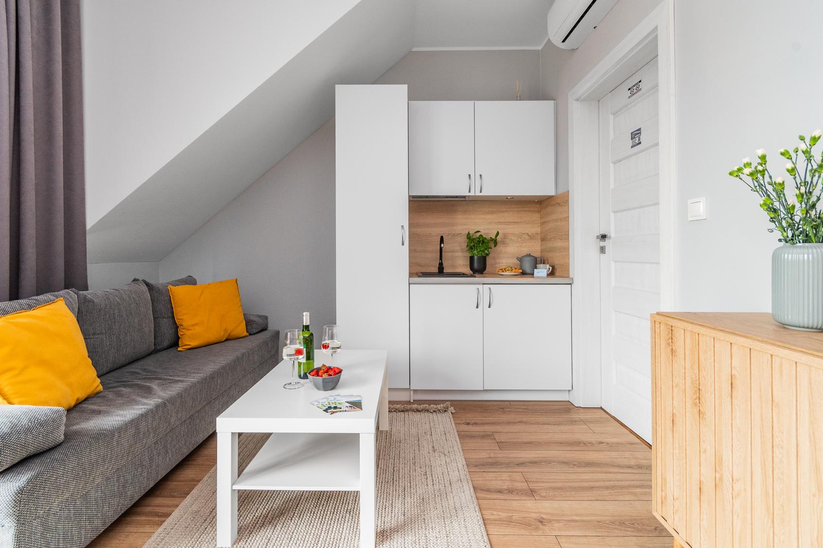 Aneks kuchenny został wyposażony we wszystkie niezbędne akcesoria, takie jak płyta grzewcza, lodówka, szklanki, sztućce i inne przybory, umożliwiając samodzielne przygotowywanie posiłków w dowolnej chwili.